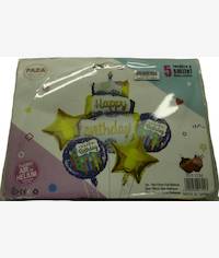 Casey 5pc Blue and Gold Themed Birthday Balloon Set Retail Packaging No Warranty